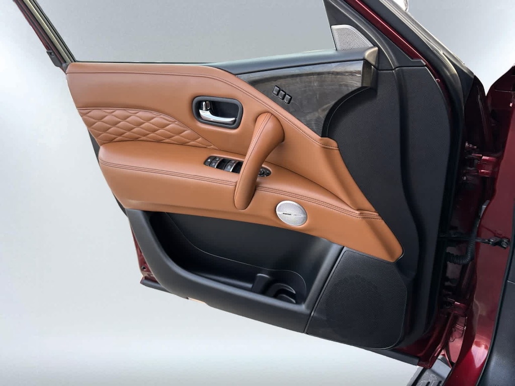 Leather Seats, Third Row Seat, Navigation, Sunroof, 4x4 INFINITI SENSORY with Coulis Red exterior and Saddle Brown interior features a 8 Cylinder Engine with 400 HP at 5800 RPM*.