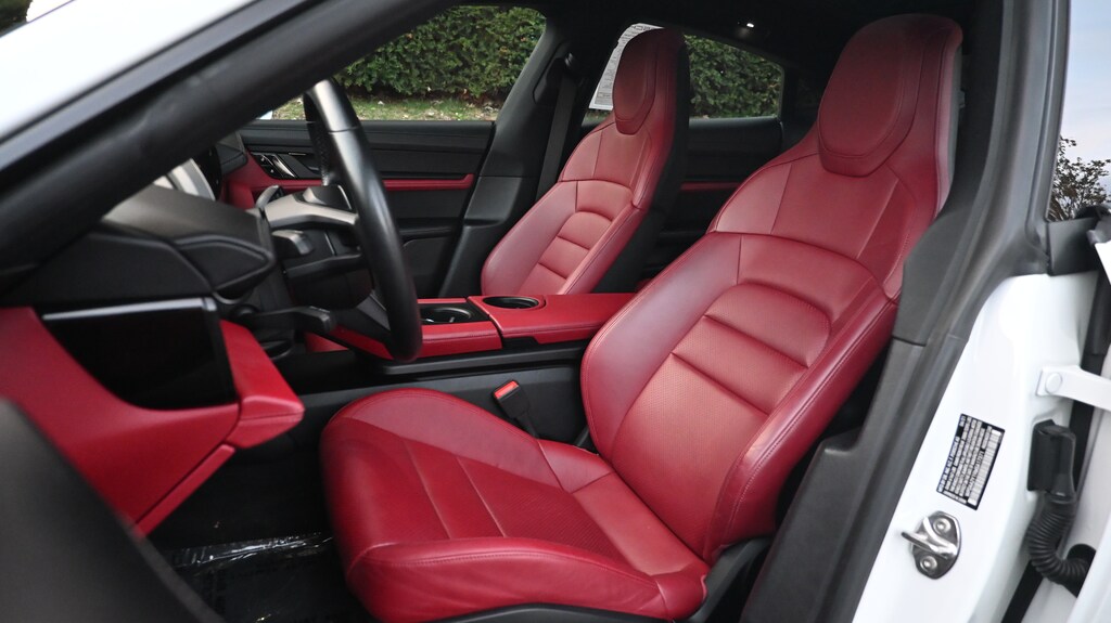 Navigation, Quad Bucket Seats, Power Liftgate, Heated Driver Seat, Back-Up Camera Porsche Taycan with White exterior and Bordeaux Red/Black interior features a Electric Motor. Vehicles must pass an extensive 111-point checklist and inspection, 2 Year/Unlimited Mile Warranty from the date of sale, or when New vehicle warranty has expired, $0 Deductible for warranty repairs, transferable to subsequent owners, All work done by Porsche-trained technicians, only genuine Porsche parts are used in reconditioning, 24/7 Roadside Assistance is included during the Certified Warranty period This Taycan is priced $5,500 below J.D. Power Retail. Reduced from $51,998.