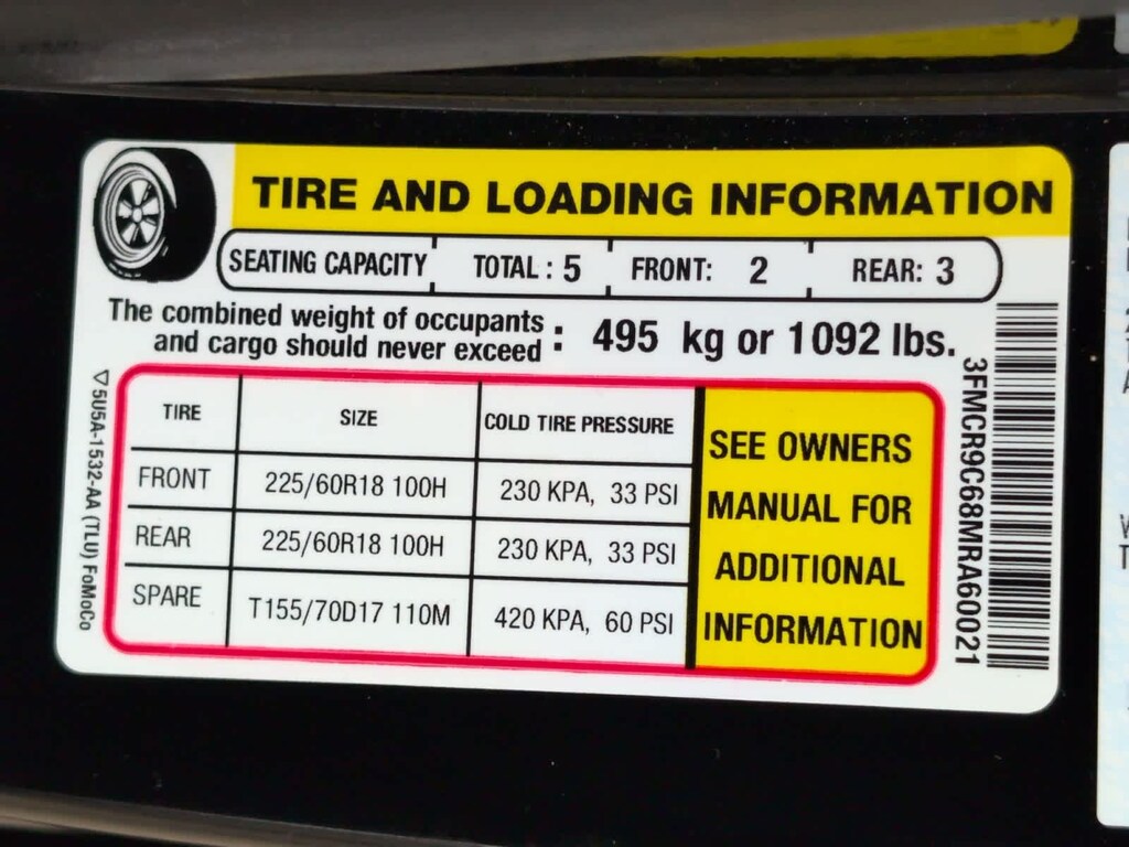 - Front tires: 225/60HR18.0
