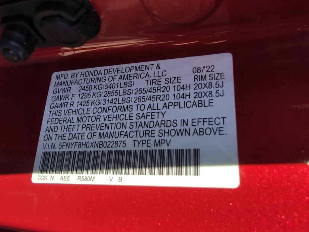 - Front tires: 265/45HR20.0